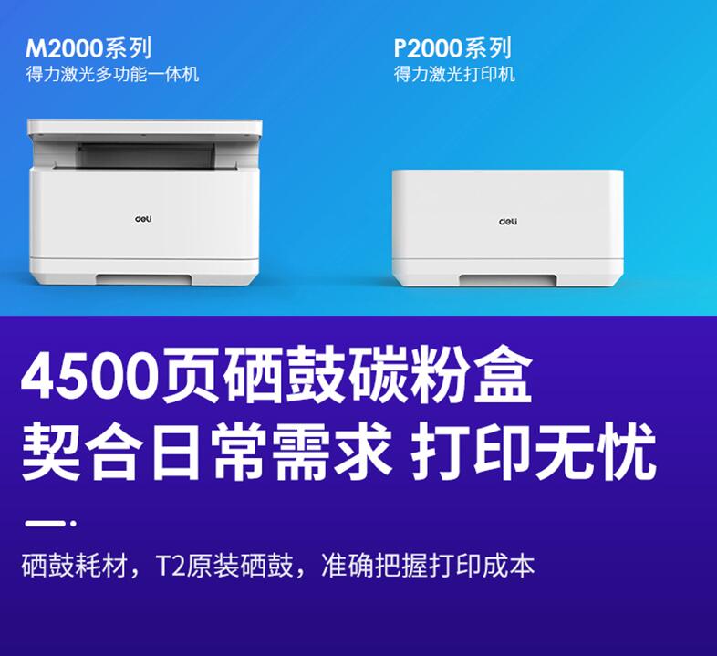 得力T2原裝硒鼓墨盒碳粉墨粉M2000DW M2000DNW M2000N DN NW P2000D P2000W 2000激光復印機打印機粉盒通用